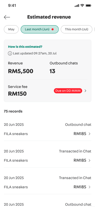 Our system automatically detects and estimates your revenue based on your completed transactions from chats, outbound chats (taken out of Carousell) and through the ‘Buy’ button.