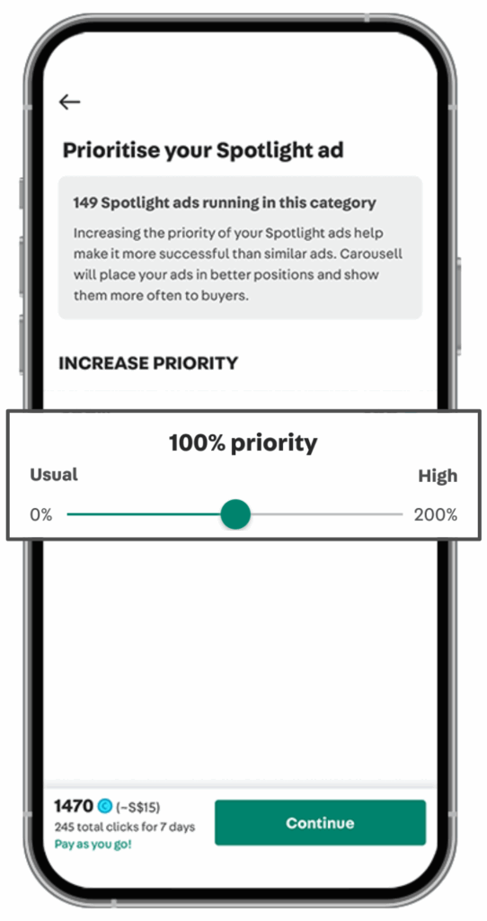 Instead of allocating a fixed amount of Carousell Coins to pay for your Spotlight and receiving refunds for unused coins, sellers will only pay after clicks get delivered to your listing.